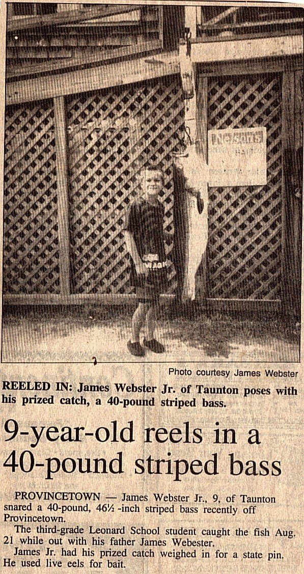 08/21/1994 40 pound striped bass. Second Place 1994 Massachusetts Saltwater Fishing Derby for the Juvenile category.